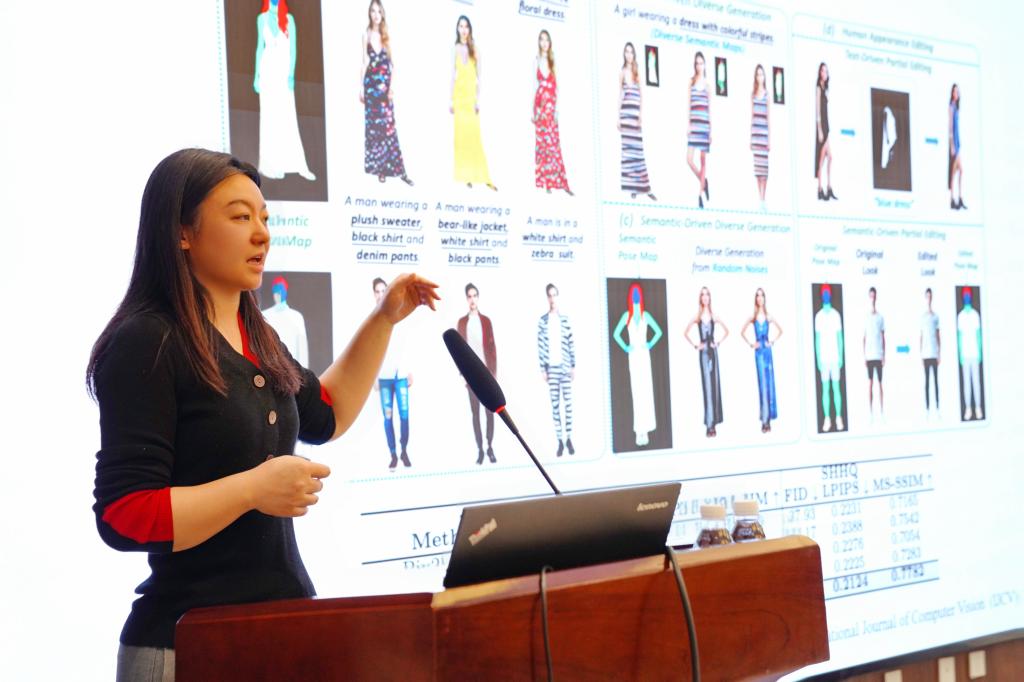 张曼教授围绕AI时代人体运动的理解和生成为主题做了演讲。她说,近年来,元宇宙和数字人已在学术界和工业界广受欢迎。人体动作和表情捕捉与合成是计算机视觉和计算机图形学中的核心任务,推动了多种应用的发展,例如角色创建、3D角色动画以及增强现实/虚拟现实等等。人类运动感知与生成旨在理解和生成自然的人体姿态序列,这项技术在虚拟和现实的交互应用中具有巨大潜力。
