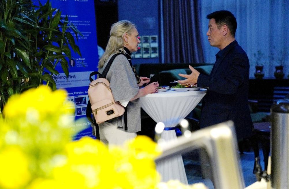 双方企业负责人在冷餐会上进行“一对一”交流