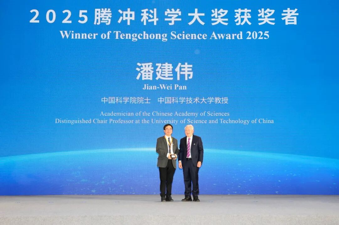 2025腾冲科学大奖获奖者潘建伟院士上台领奖。